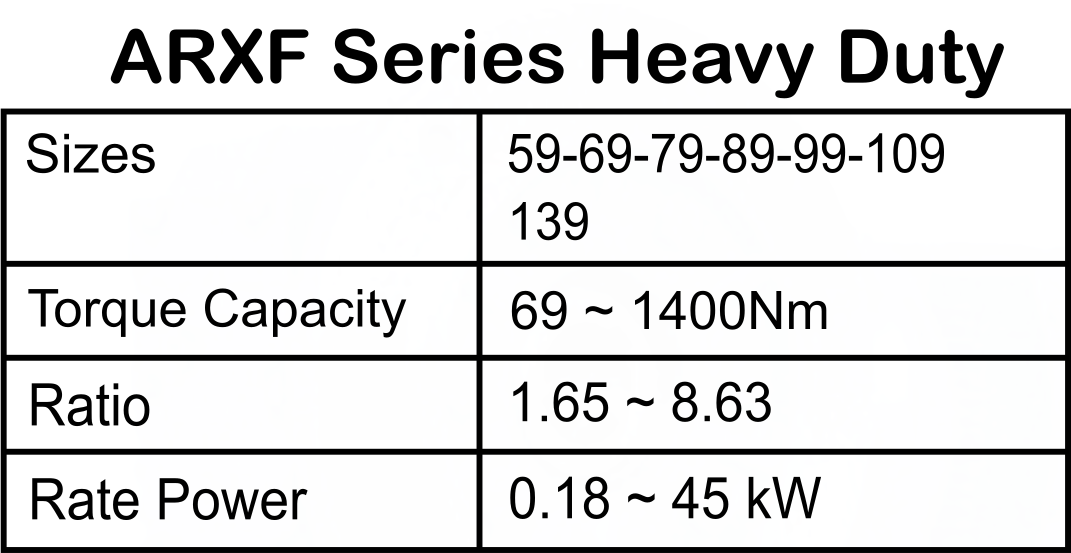 Sizes : 59-69-79-89-99-109-139 Torque Capacity : 69 ~ 1400Nm Ratio : 1.65 ~ 8.63 Rate Power : 0.18 ~ 45 kW