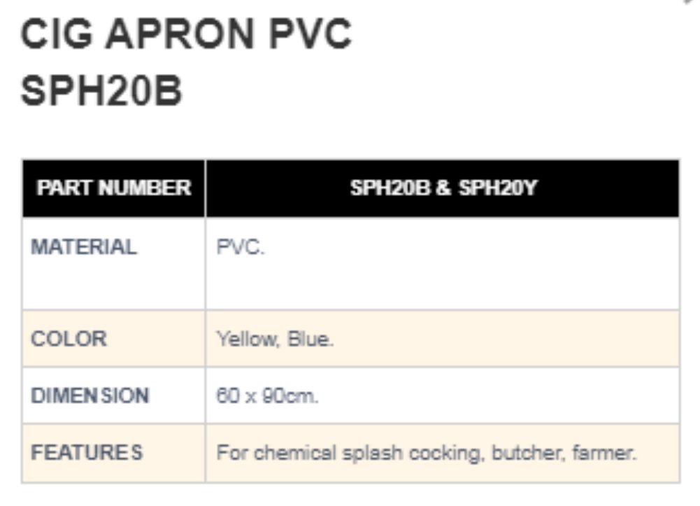APPRONE-PVC-SPEC APRON PVC APRON LAS MERK CIG SPH20B