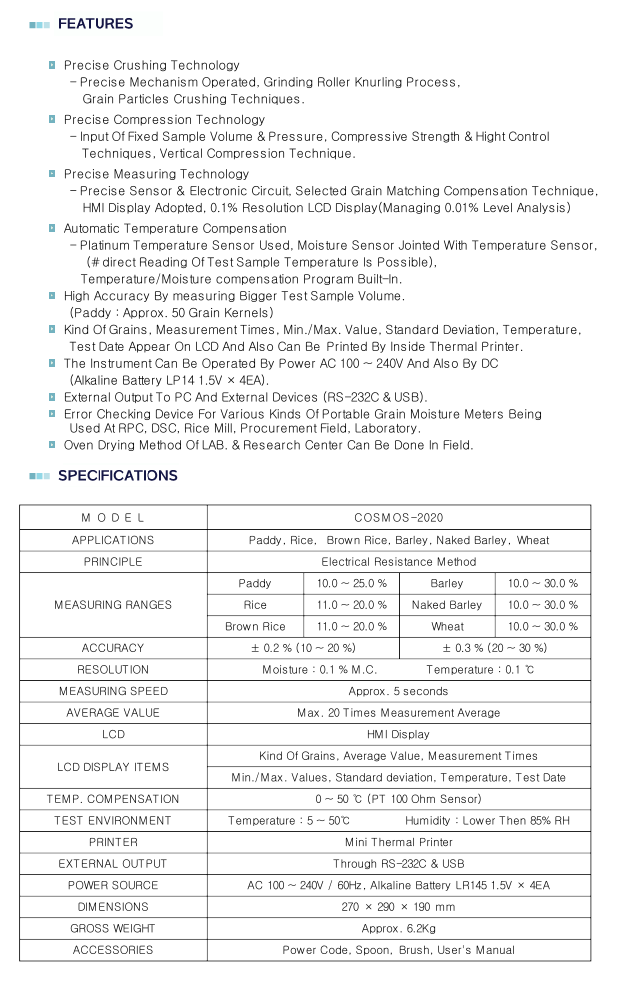 41-spek-PRIME-GRAIN-MOISTURE-TESTER-COSMOS-2020 COSMOS PRIME GRAIN MOISTURE TESTER, MERK COSMOS-2020