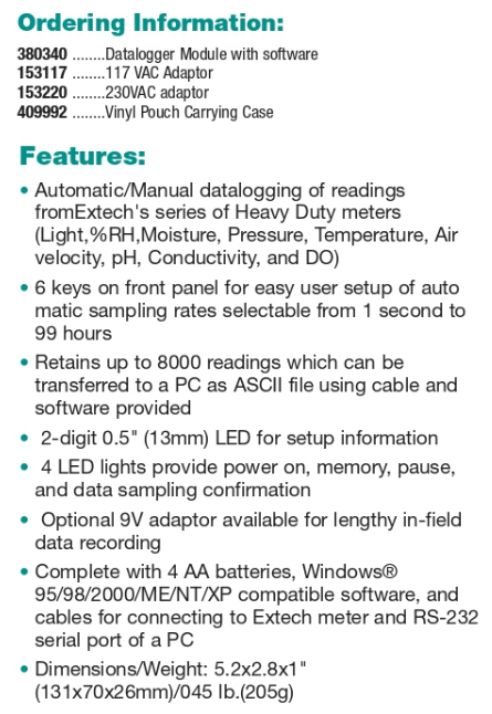 EXTECH BATTERY OPERATED DATALOGGER MERK EXTECH 380340 EXTECH 153117 EXTECH 153220 EXTECH 409992