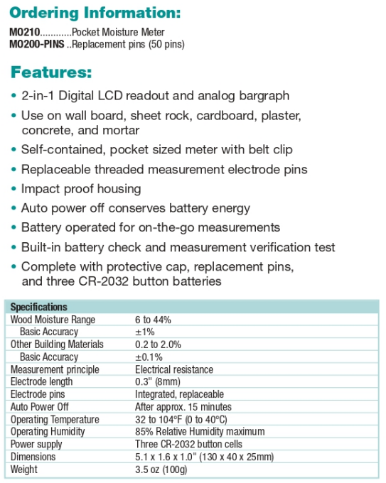 MOISTURE-METER-DATA EXTECH MOISTURE METER MERK EXTECH MO210 EXTECH MO200-PINS