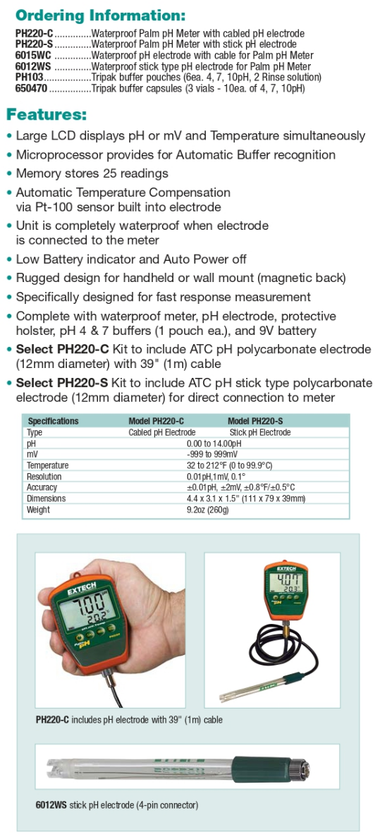 EXTECH PH METER MERK EXTECH PH220-C EXTECH PH220-S EXTECH 6015WC EXTECH 6012WS EXTECH PH103 EXTECH 650470