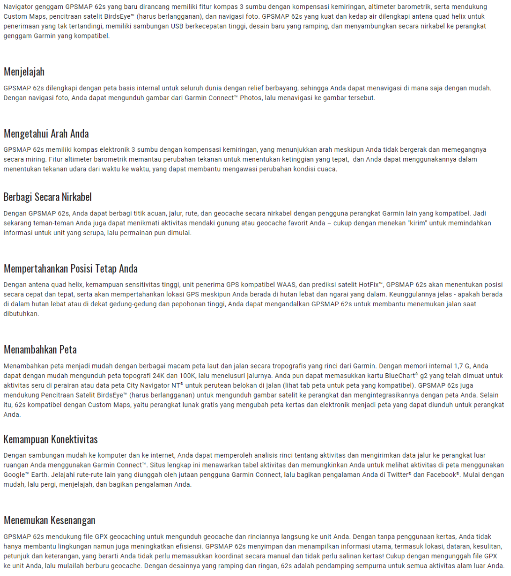 Garmin-62-Features Garmin GPS Map Garmin 62 Garmin-62-Spesifikation Garmin GPS Map Garmin 62