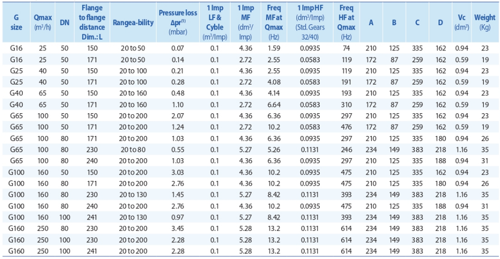 Flow rate 0.4 m3/h to 250 m3/h G size G16, G25, G40, G65, G100, G160