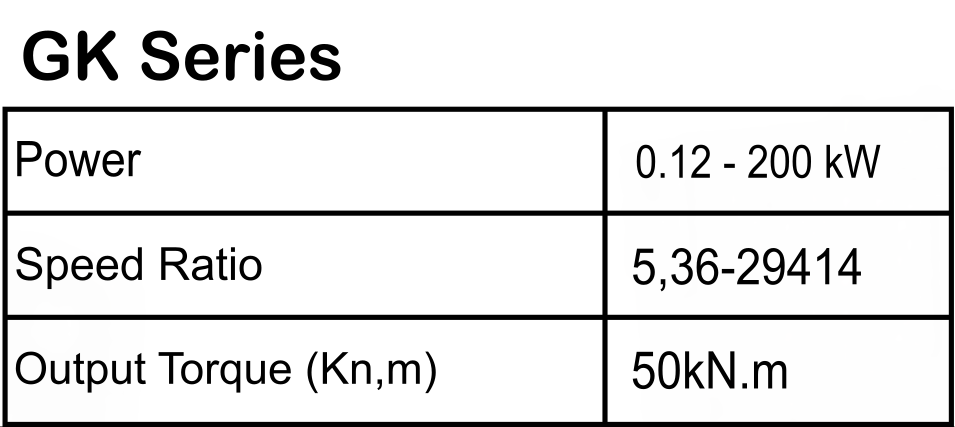 Power : 0.12-200 kW Speed Ratio : 5.36-29414 Output Torque (Kn,m) : 50kN.m