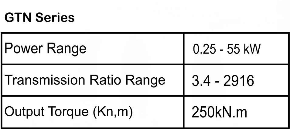 Power Range : 0.25-55 kW Transmission Ratio Range : 3.4 - 2916 Output Torque (Kn,m) : 250kN.m