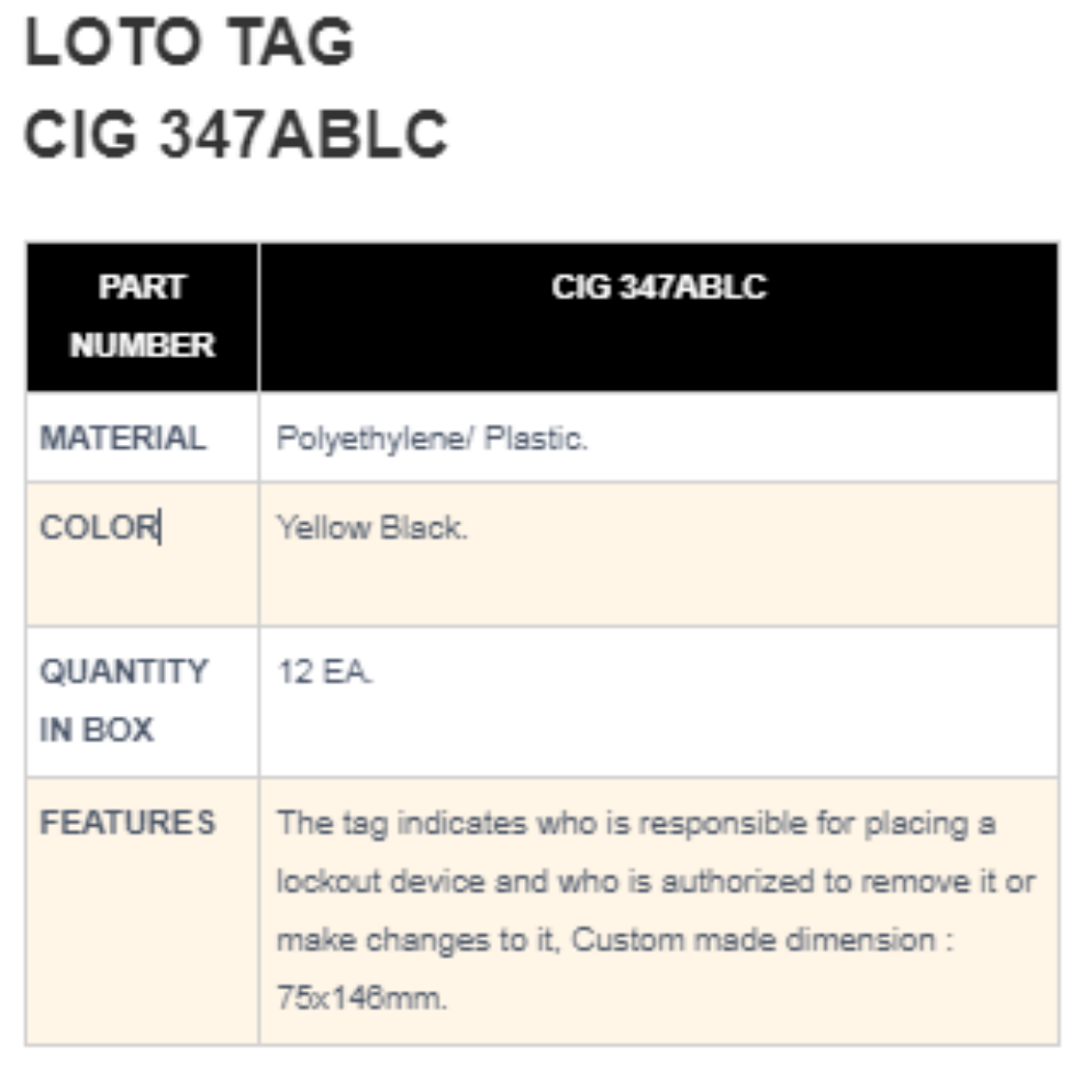 LOTO-TAG-SPEC LOTO TAG MERK CIG 347 ABLC