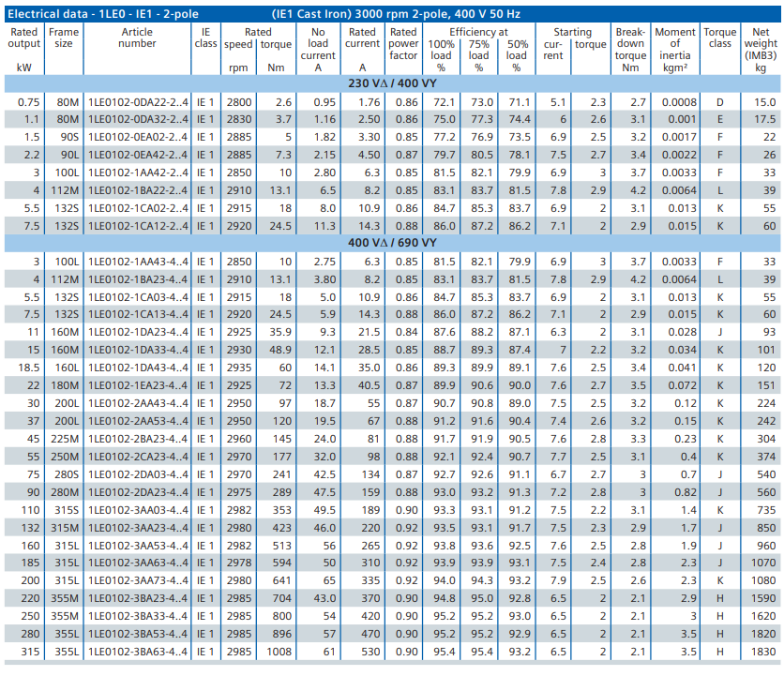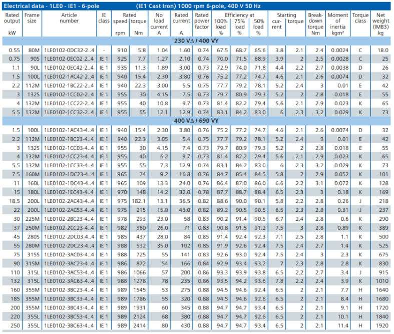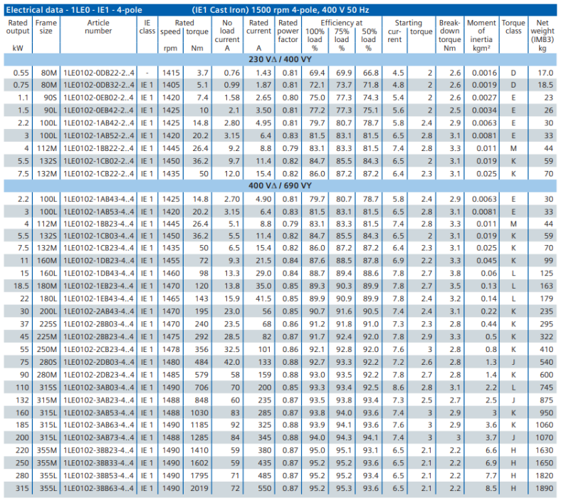 - Perlindungan termal tertanam 3x PTC (motor 1LE0/1LA7 dan 1LE1)