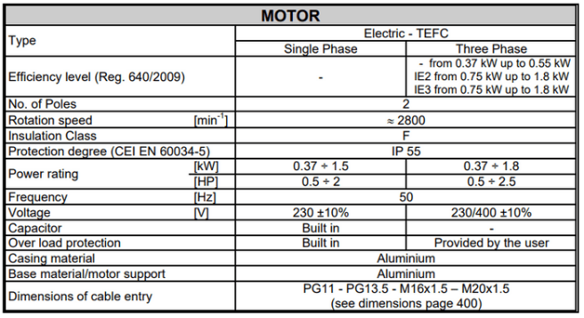 Pompa listrik sentrifugal impeller tunggal dengan bagian hidrolik dalam baja tahan karat AISI 304 dan AISI 316