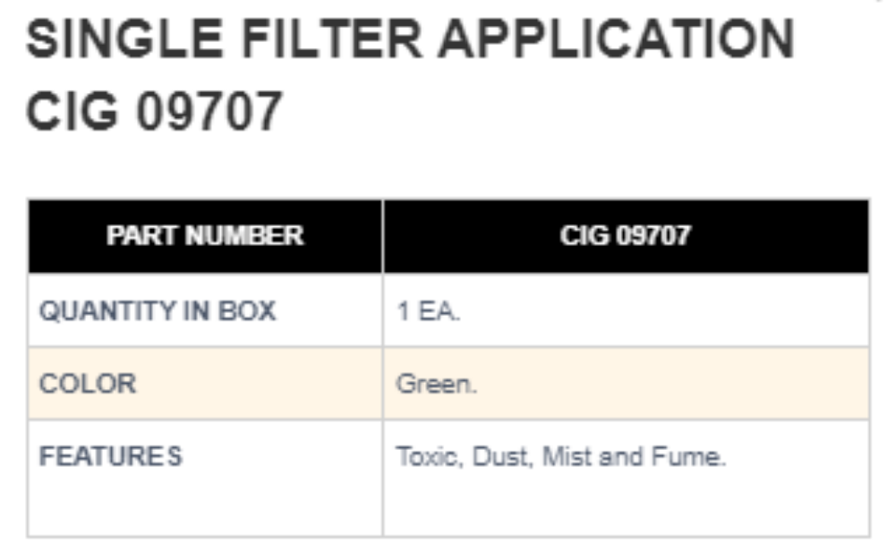 SINGLE-FILTER-SPEC SINGLE FILTER CIG 09707