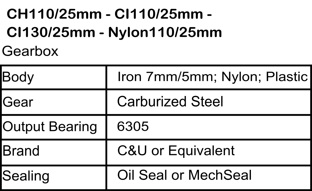 CH110/25mm-CI110/25mm-CI130/25mm-Nylon110/25mm