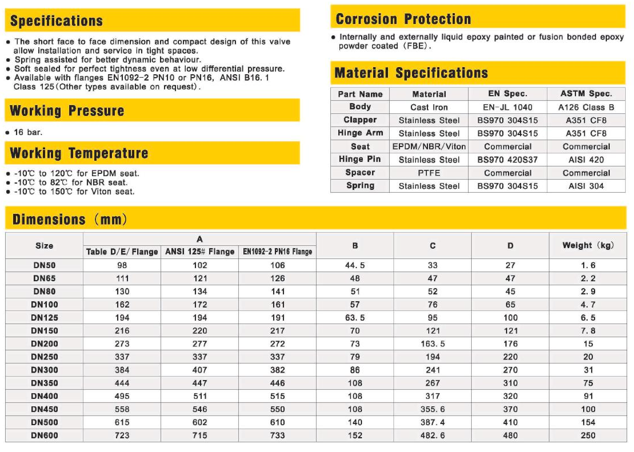 Wafer Swing Check Valve Merk Weflo Size DN50-DN600 PN16 Class 125 FIG 5301